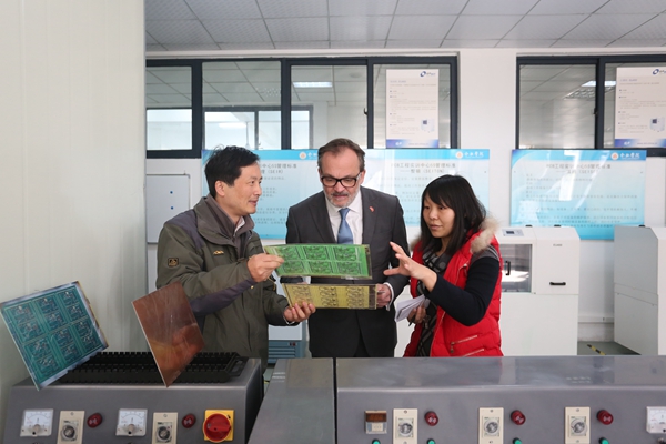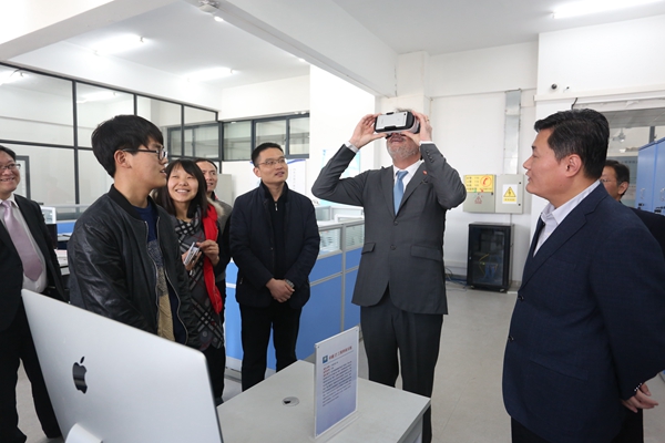 會談后,施特萊特林校長參觀了計算機系與電子系實驗室。