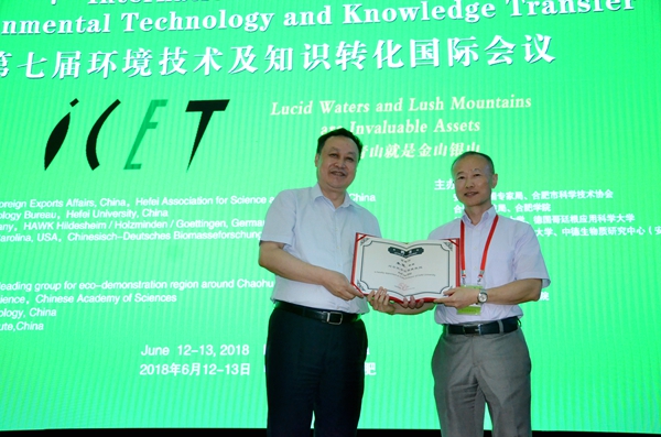6月13日,第七屆環境技術及知識轉化國際會議在我校二區圖書館學術報告廳A廳圓滿結束。合肥學院黨委書記蔡敬民,德國生物質研究中心主任、德國羅斯托克大學教授萊勒斯,巢湖管理局局長余忠勇等人參加閉幕式。