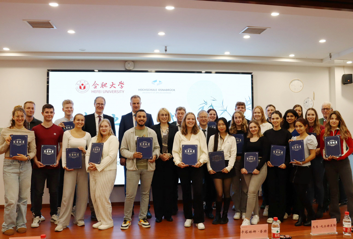王其東代表學(xué)校對卡塔琳娜·普特市長一行表示熱烈的歡迎,對徽文化秋令營的成功舉辦表示祝賀。他表示,此次交流中德學(xué)生建立起深厚情誼,為日后攜手書寫兩校友誼新篇章打下堅實基礎(chǔ),為雙方未來教育、經(jīng)濟(jì)、文化發(fā)展注入了生機(jī)與活力。奧斯納布呂克應(yīng)用科學(xué)大學(xué)校長亞歷山大·施梅曼先生在致辭中感嘆中國發(fā)展速度之快,同時也很高興看到合肥大學(xué)的高速發(fā)展變化,希望通過更多形式的交流活動來加深兩校友誼,深化合作與發(fā)展。德國奧斯納布呂克應(yīng)用科學(xué)大學(xué)的學(xué)生代表伊爾薩比·拉德馬赫分享了在合肥大學(xué)交流期間的體驗與感悟,并表示會銘記這段美好回憶。