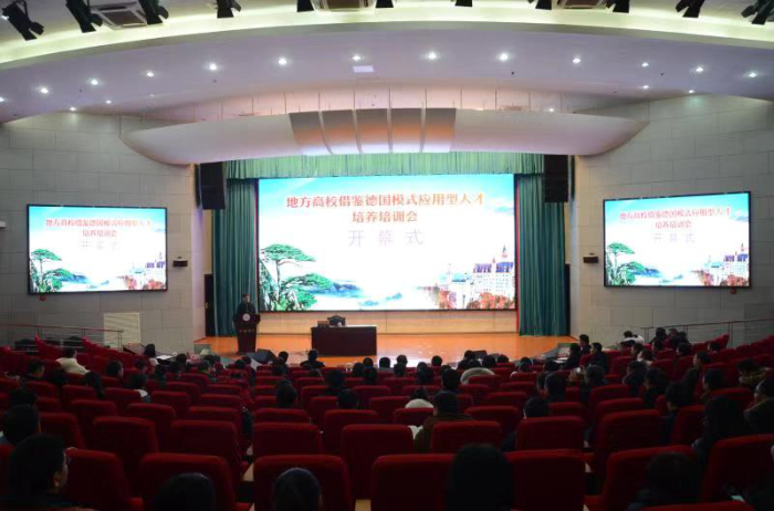 1月9日上午,與會(huì)代表在參觀中德教育合作三十周年展后,在圖書(shū)館學(xué)術(shù)報(bào)告廳參加了培訓(xùn)會(huì)開(kāi)幕式。我校各二級(jí)學(xué)院教學(xué)院長(zhǎng)、專業(yè)負(fù)責(zé)人及新進(jìn)教師三百余人到場(chǎng)聆聽(tīng)。