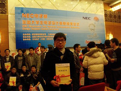 合肥學院榮獲2009年NEC杯全國大學生電子設計競賽一等獎(張悅龍同學代表我院參賽隊在人民大會堂領獎)