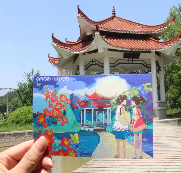 繼續(xù)隨性游走,一排排茂密的香樟樹陳列在路的兩旁,幽幽的清香伴隨著清風拂來。一座白色的小洋樓豁然出現(xiàn)在眼前,原來這是我校韓國留學生學習上課的地方。隨后漫步至一水池處,我校第八屆花燈節(jié)就在此處舉辦,當時,地燈、水燈、繡球燈等百余盞花燈被擺放在水池兩側。搖曳的燭光在朦朧月光的映照下更顯美麗。活動期間,兩樹之間拴上了紅繩,紅繩上掛滿了同學們書下的心愿,譬如:“希望今夜遇見女神”,“四級必過”等。“花燈節(jié)”那天,這里夜晚的寧靜悄悄溜走了,只見這里人山人海,熱鬧非凡。