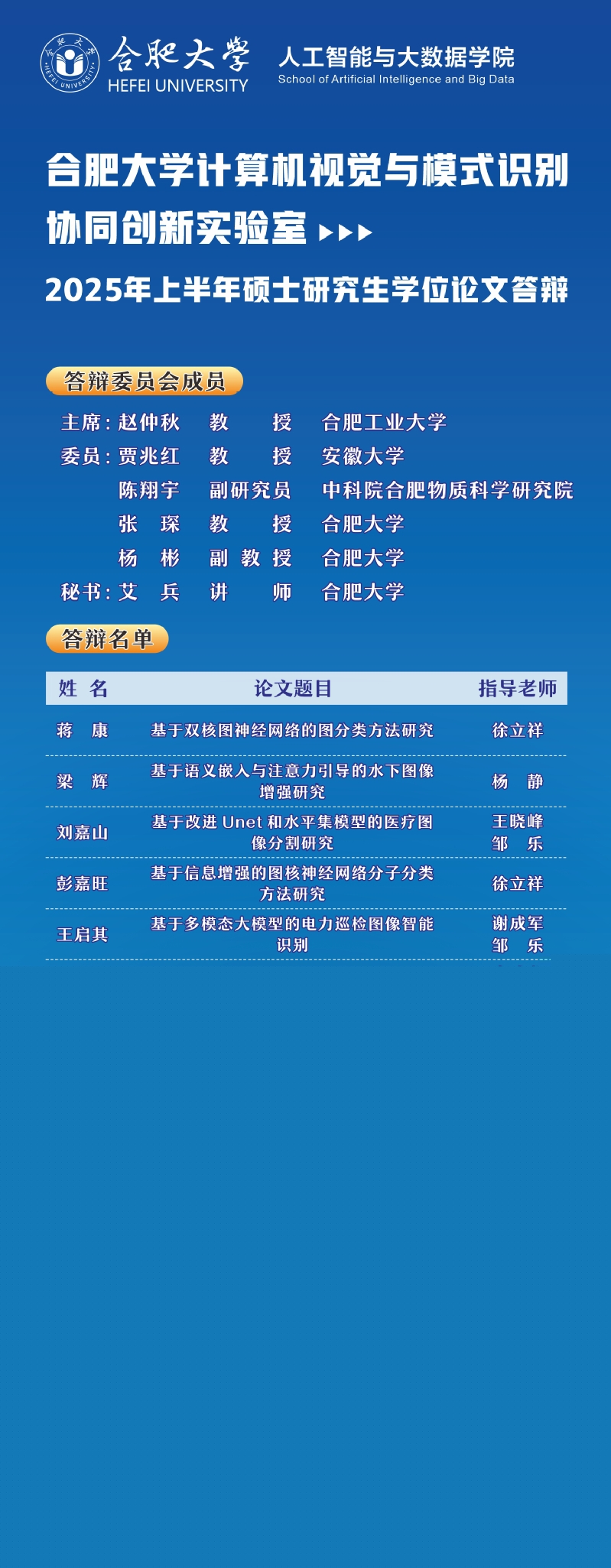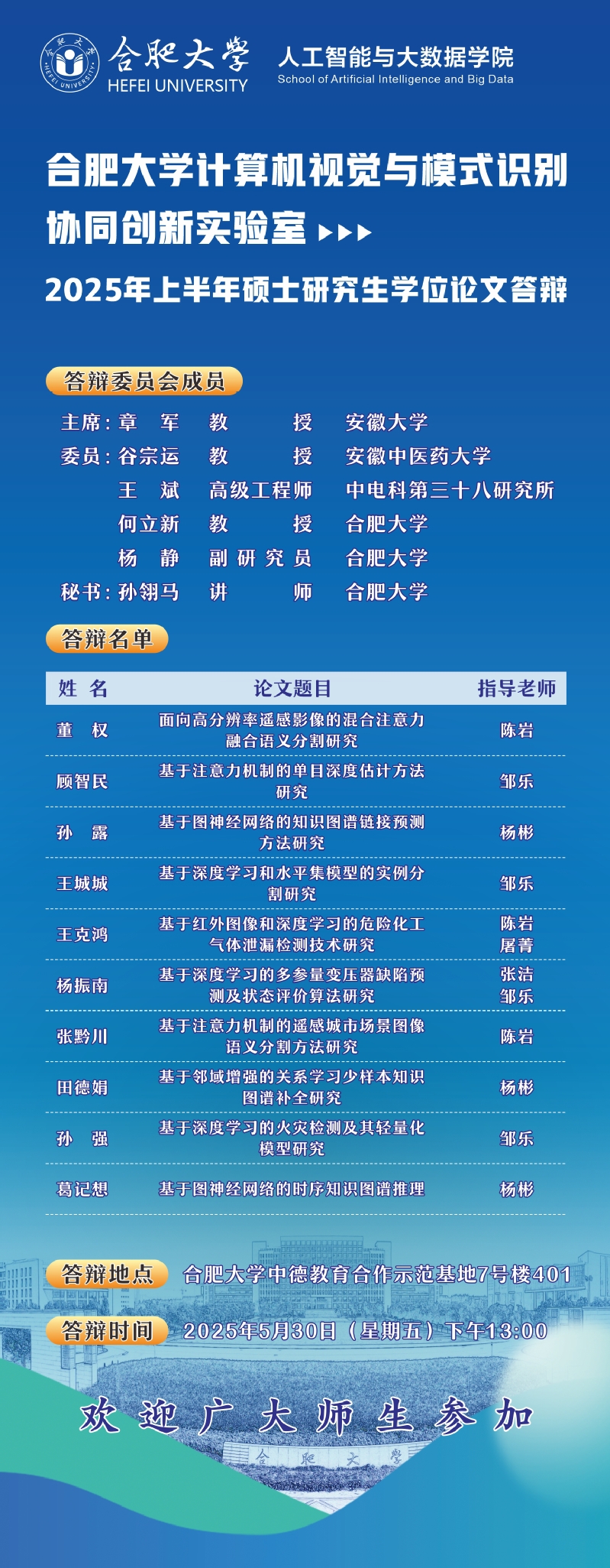 實驗室2025年上半年碩士研究生學位論文答辯預告