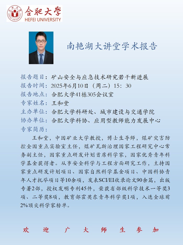 【南艷湖大講堂】礦山安全與應急技術研究若干新進展