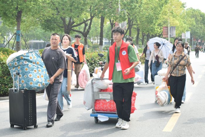 談到入學感受時,25級車輛工程專業本科新生蘇悅說:“校園里歡迎新生的標語和立牌特別暖心,熱情細致的引導服務極大緩解了我初來乍到的陌生感,也讓我對新的大學生活充滿了期待。”25級新聞與傳播專業研究生新生張雨欣說:“雖然是陰雨天,但是雨中忙碌的身影、親切的指引和燦爛的笑容,讓校園洋溢著蓬勃的朝氣。相信未來的日子即便偶有風雨,我們也不是獨自前行,很高興能進入合肥大學開啟新的學習之旅!”
