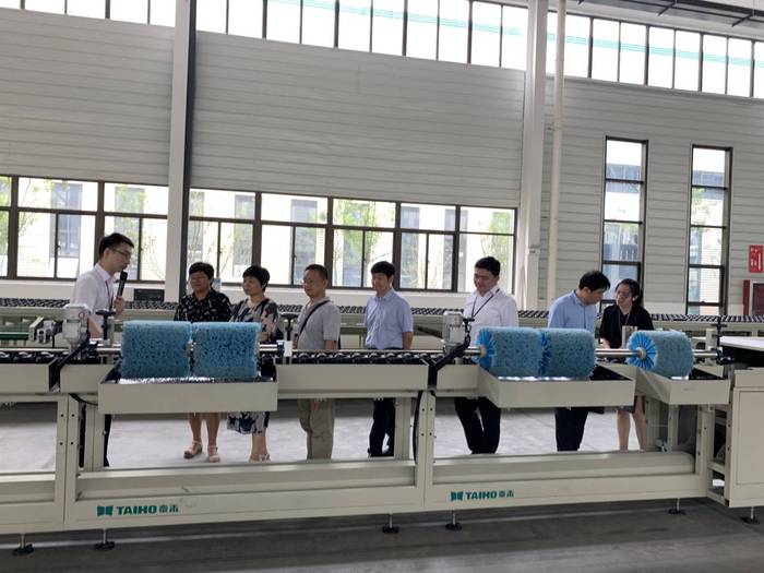 我校一行人先后參觀了公司在智能檢測分選設備、智能化倉儲系統、工業機器人等產品的生產制造及設備的現場演示,并認真聽取了公司自成立以來的發展歷程、市場銷售情況以及科技研發等方面情況。