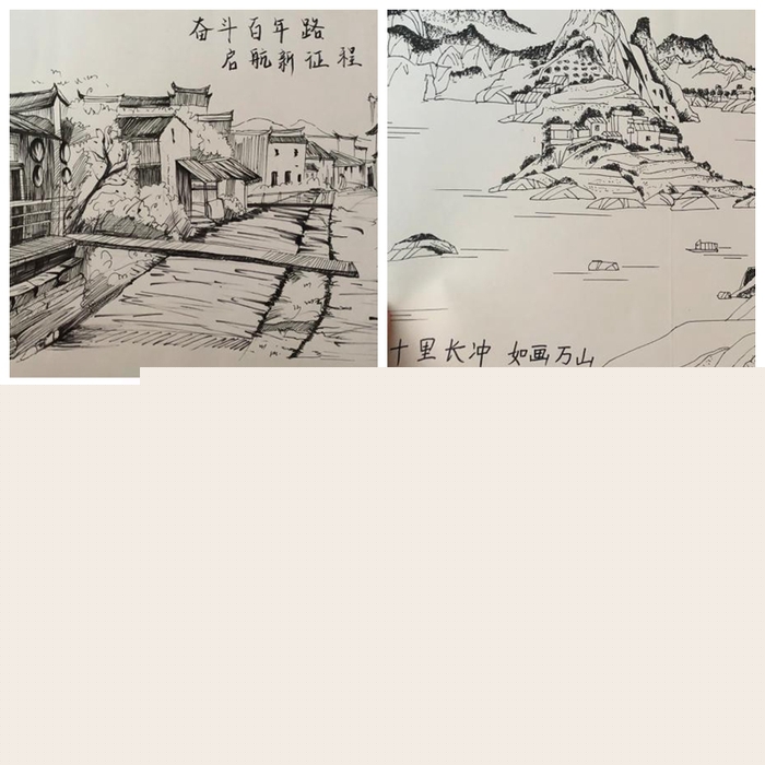 在完成金絲皇菊的包裝設(shè)計和周邊文創(chuàng)產(chǎn)品設(shè)計后,團隊成員還舉辦了主題為“禮贊建黨百年,書畫美麗鄉(xiāng)村”的慶祝建黨100周年書畫和手工作品展。同學們緊扣“農(nóng)業(yè)、農(nóng)村、農(nóng)民”主題,突出建黨100年來我國農(nóng)村翻天覆地的變化?;顒又校蠹覝蕚淞烁魇礁鳂拥墓ぞ?,如超輕粘土、卡紙、膠水等等,充分發(fā)揮專業(yè)特長,在三天時間內(nèi)完成了繪畫、書法、手工作品共60余件,準備近期在萬山鎮(zhèn)文化館展出。