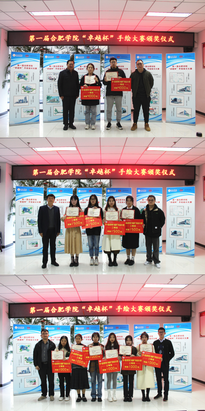 隨后,朱濤宣布了合肥學(xué)院第一屆“卓越杯”手繪設(shè)計(jì)大賽獲獎(jiǎng)名單。參會(huì)嘉賓為獲獎(jiǎng)學(xué)生頒獎(jiǎng)。