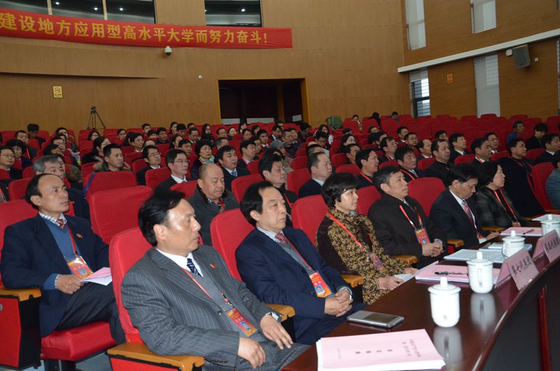 黨委書記蔡敬民代表學校黨委向大會作了題為《改革創新 攻堅克難 加快建設地方應用型高水平大學》的工作報告。報告回顧了學校十二年來取得的各項成績,提出了學校今后工作的奮斗目標與努力方向。