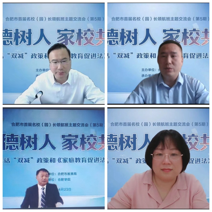 合肥九中黨委書記、校長章偉,長豐縣梅沖湖學(xué)校書記、校長高偉,合肥市翡翠學(xué)校黨支部書記、校長丁文進(jìn),合肥市星海幼教集團(tuán)總園長李瑩分別以“‘六大行動’落實(shí)雙減、‘學(xué)在九中’ 提質(zhì)增效”、“全面學(xué)習(xí)《家庭教育促進(jìn)法》,構(gòu)建家校社立體網(wǎng)格”、“‘雙減’背景下小學(xué)生校外成長共同體建設(shè)的實(shí)踐與思考”和“讓教育為每個人的成長鋪路”為主題進(jìn)行了交流發(fā)言。