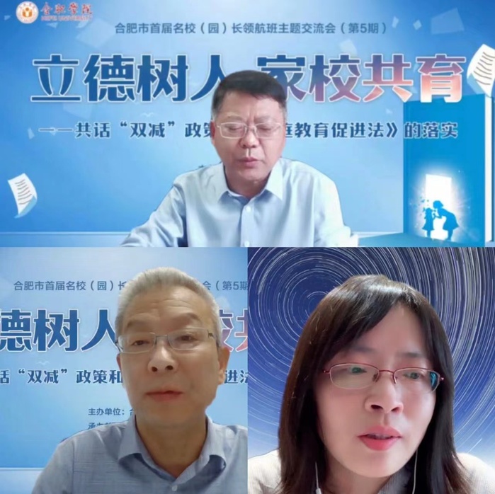 下午,合肥七中黨委書記、校長鄧宗國,合肥市第四十五中學(xué)教育集團(tuán)黨委書記、校長姚劍,合肥市六安路小學(xué)教育集團(tuán)黨總支副書記、校長朱清萍分別以“疫情防控背景下學(xué)生的安全問題與策略”、“雙減背景下如何有效開展家校共育”、“落實(shí)‘雙減’政策回歸教育本真”為主題進(jìn)行了交流發(fā)言。