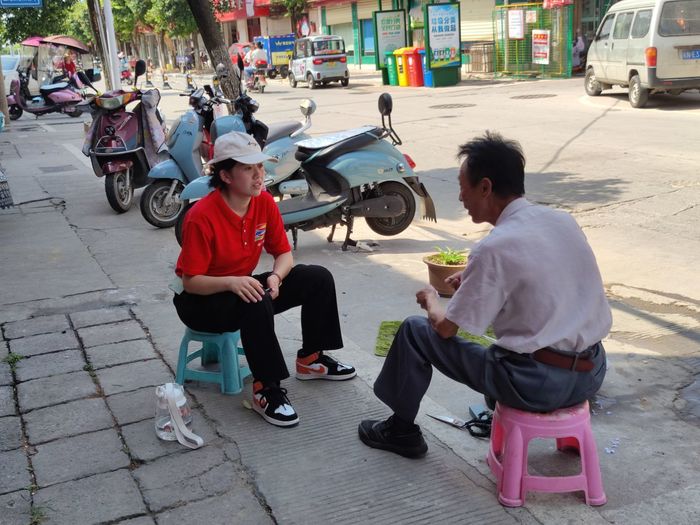 活動期間,隊員們還來到鎮上,在街頭巷尾對街道居民、店家、公交車司機等小鎮居民進行走訪調研以此來了解小鎮的發展。