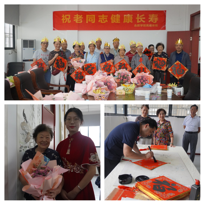 “菊花吐蕊,桂花含香;歲歲重陽,今又重陽。”為弘揚尊老、敬老、愛老的中華傳統(tǒng)美德,豐富退休老同志精神文化生活,我校離退休工作處于9月28日上午在合肥學院北區(qū)舉辦重陽節(jié)集體祝壽活動,為70、80整歲的離退休老同志獻上重陽祝福與慰問。黨委委員、組織部部長、離退休工作處處長白義香,離退休工作專員余勇以及離退休工作處相關(guān)工作人員參與此次活動,活動由機關(guān)黨委書記、組織部副部長、離退休工作處副處長宋執(zhí)蕓主持。