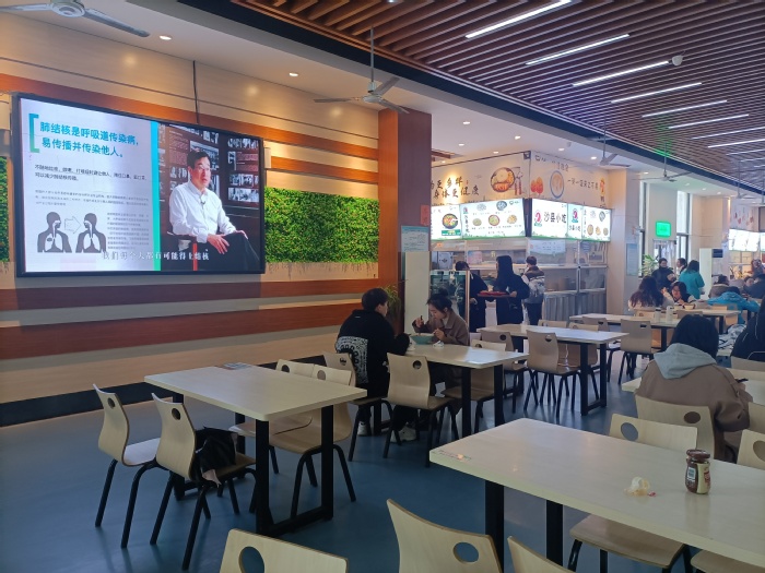 多方宣傳增強防治意識。我校在校園內設置“積極防治結核病”宣傳展板,分發預防結核病核心知識的宣傳折頁近3000份,在校內人流量大的地方懸掛橫幅,在校食堂投放防治結核病宣傳教育視頻,擴大宣傳覆蓋面,提高師生對結核病的關注度,引導師生樹立正確的結核病防治觀念。