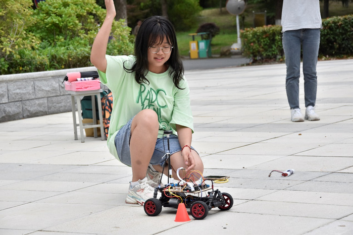 自2022年9月以來,在智能車指導(dǎo)團(tuán)隊(duì)的指導(dǎo)下,在30多位老隊(duì)員的協(xié)助下,來自自動(dòng)化、電子信息工程等6個(gè)專業(yè)的200多名新隊(duì)員參與本次賽事的培訓(xùn)與實(shí)踐活動(dòng),經(jīng)過多輪考核與隊(duì)伍整合,共有14組團(tuán)隊(duì)參加本次競(jìng)速組和基礎(chǔ)組競(jìng)賽。比賽期間,智能車在跑道上順利做出拐彎、倒車等動(dòng)作,引發(fā)了全場(chǎng)觀眾的熱烈掌聲。在場(chǎng)領(lǐng)導(dǎo)和老師在比賽過程中悉心指導(dǎo),并對(duì)同學(xué)們的創(chuàng)新精神和努力成果給予肯定。比賽決出了一等獎(jiǎng)2項(xiàng)、二等獎(jiǎng)4項(xiàng)、三等獎(jiǎng)5項(xiàng),比賽結(jié)束后,全體老師和參賽成員合影留念。