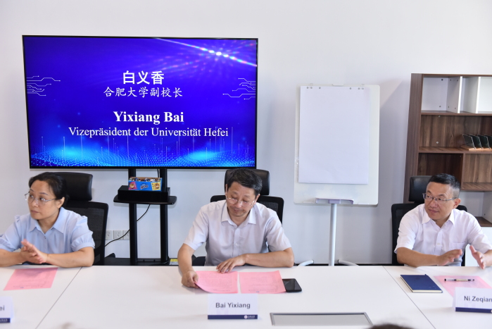 白義香代表合肥大學向遠道而來的德國師生致以熱烈歡迎。埃姆登/里爾應用科學大學是我校跨越四十載的友好合作高校,兩校共建的雙元制大陸班已有五屆111名畢業生。本次學術夏令營作為學校以高水平中外合作辦學助力高質量發展的重要舉措,以學術為橋、以文化為紐、以學生為本,為中德科技人文交流搭建了優質交流平臺。希望同學們在這里收獲知識與友情,以務實創新拓展學術思維,以開放包容共筑文明共同體。