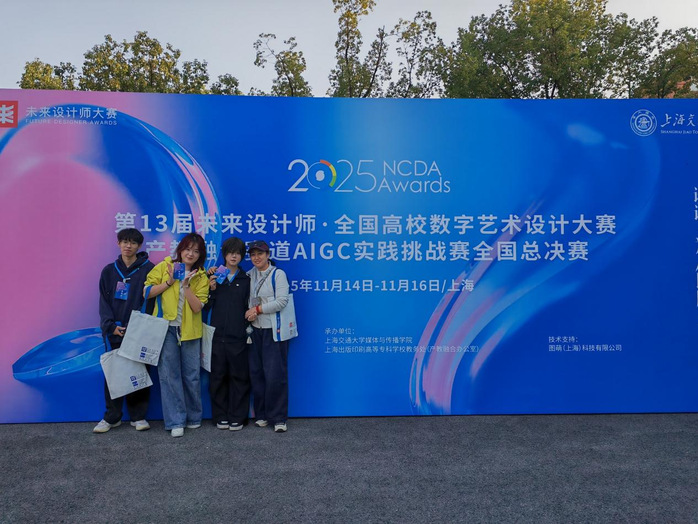 11月16日,在上海交大落幕的2025第13屆未來設計師·全國高校數(shù)字藝術(shù)設計大賽(NCDA)國家級產(chǎn)教融合賽道—AIGC實踐挑戰(zhàn)賽主題實踐大賽全國總決賽中,我校設計學院王瑩瑩、羅沁雪、溫尼西同學在石林老師的指導帶領(lǐng)下,從全國146支參賽隊伍中脫穎而出,榮獲全國二等獎。