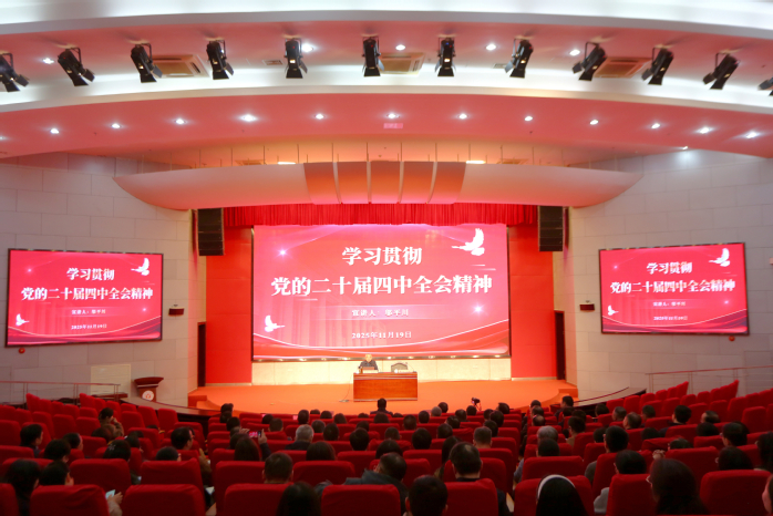 為深入學習貫徹黨的二十屆四中全會精神,統一思想、提高認識、凝心聚力,推動學校事業高質量發展,11月19日下午,我校在圖書館報告廳A廳舉行學習貫徹黨的二十屆四中全會精神宣講報告會。報告會由校黨委書記鄔平川主講,校黨委副書記周飛主持,全體處級以上領導干部參加學習。