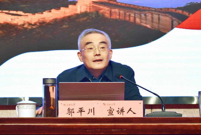鄔平川圍繞黨的二十屆四中全會精神,結合學校發展實際與當前重點工作,從“提高認識,深刻領會重大意義”“學懂弄通,準確把握核心要義”“學思踐悟,確保學習走深走實”等三個方面作了全面深入的解讀和宣講。