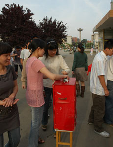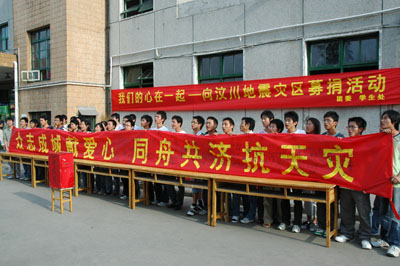 5月12日下午14時28分,四川境內汶川縣發生7.8級地震,造成巨大傷亡,引起全國人民的深切關注。我院黨政領導高度重視,及時在我院開展向汶川地震災區捐款活動。5月13日下午,募捐活動在院黃山路校區第二食堂和院南艷湖校區教學區東門同時展開。院廣大師生紛紛走向募捐箱,向災區人民獻上自己的一片愛心。5月14日下午,我院又開展了第二次募捐活動。此次募捐活動充分體現了我院師生對受災地區人民的密切關注與深切同情,同時體現了中華民族“一方有難,八方支援”的優良傳統。