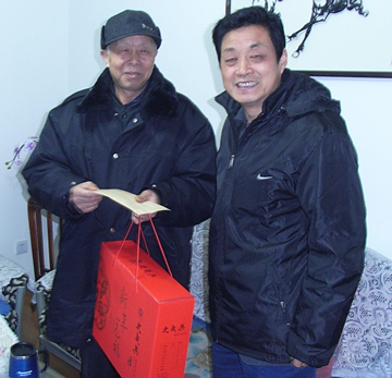 2008年元月22日是今冬以來最寒冷的一天,冰雪未融,春寒料峭.院工會主席鮑安義率院工會干部,踏著冰雪前往省建材局宿舍慰問看望我院中文系退休教授?p上世紀60年代勞模王圣貽老師,帶去了學院黨政領導的關心和問候,送上了新春禮物和省級勞模榮譽證書,并與王圣貽老師促膝談心,黨政領導對勞模的關愛深深感動了這位60年代的勞模,她滿含熱淚地表示要為學院的建設和發展再獻余熱。