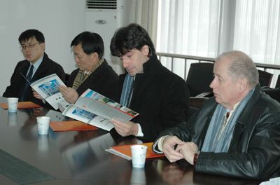 1月22日上午,德國Eurec公司 Kottmann總裁與北京蘭諾克移動垃圾箱有限公司董事總經理趙鐵旺一行四人來我院南艷湖校區訪問,副院長蔡敬民教授熱情接見了來賓并介紹了合肥學院開放型的辦學思路、對德合作情況、學院中德環境技術轉化中心與城市固廢物處理與資源化利用安徽省工程技術研究中心的工作開展情況,希望雙方共同為推動合肥環保事業的發展做出貢獻。外事處副處長吳克教授、生物與環境工程系主任張潔教授、金杰副教授、余志敏副教授陪同會見。
