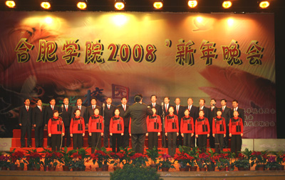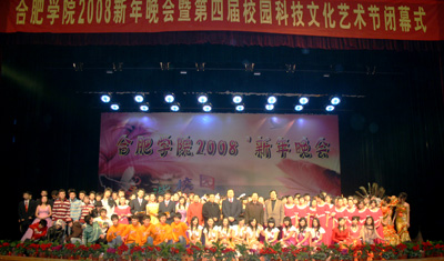 12月28日晚,我院南艷湖校區致用禮堂內座無虛席,近2000名師生觀看了合肥學院2008新年晚會暨第四屆校園科技文化藝術節閉幕式。院領導陶登松、趙良慶、鄭永紅、陳嘯、丁明出席第四屆校園科技文化藝術節幕閉式并觀看了晚會。