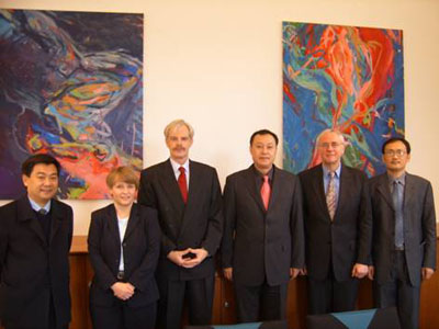 11月22日,副院長蔡敬民教授率團應邀訪問了德國奧斯納布呂克大學。奧斯納布呂克大學校長Claus Rainer Rolinger熱情地接待了代表團一行。蔡敬民副院長首先轉達了趙良慶院長對Rolinger校長的親切問候,Rolinger校長也高興地回顧了在合肥的訪問,對合肥學院的國際合作留下了深刻印象。奧斯納布呂克大學分管教學的副校長Thomas Vogtherr教授和外辦留學辦執行主任Beate Teutloff女士、合肥學院外事處副處長吳克教授、副處長陳景林參加了會談。經過兩個多小時的深入會談和考察,雙方達成首先在德語、教育學、生物、管理學等專業領域開展學生和教師的交流,然后積極創造條件開展在生物學、納米科學等前沿領域科研合作。校長Claus Rainer Rolinger教授特別強調歡迎合肥學院具備德語基礎的優秀本科畢業生來奧斯納布呂克大學攻讀碩士學位。
