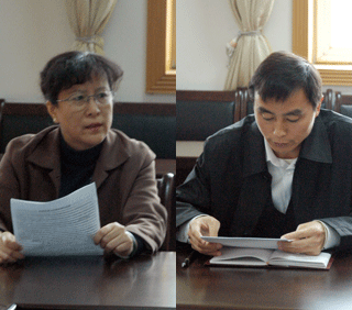 電子系黨總支書記黃曉云、管理系黨總支副書記繆群道發言