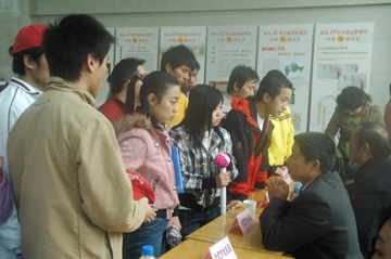 11月26日,2007年安徽省高校畢業(yè)生綜合類就業(yè)市場(chǎng)首場(chǎng)大型招聘會(huì)在合肥學(xué)院南校區(qū)如期舉行。省內(nèi)外共400余家用人單位和3萬(wàn)多名畢業(yè)生參加了此次雙向選擇招聘會(huì)。本次招聘會(huì)共提供就業(yè)崗位1萬(wàn)多個(gè),很多大型單位紛紛組團(tuán)前來(lái)招聘,如中國(guó)銀行、中國(guó)聯(lián)通等帶了諸多的招聘職位。而省外用人單位“回頭客”不少,外地市人事局等單位共組織了40多家單位前來(lái)參加會(huì)議。招聘會(huì)從上午8點(diǎn)開始,10點(diǎn)時(shí)達(dá)到高峰,雖然人數(shù)眾多,但整個(gè)會(huì)場(chǎng)井然有序,熱烈而隆重。