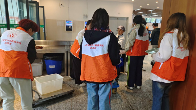 活動(dòng)當(dāng)天,人工智能與大數(shù)據(jù)學(xué)院的志愿者們不僅協(xié)助食堂工作人員維持秩序、清理餐桌和打掃地面,還幫助食堂阿姨收拾碗筷,讓人感受到志愿者的愛(ài)心與溫暖。