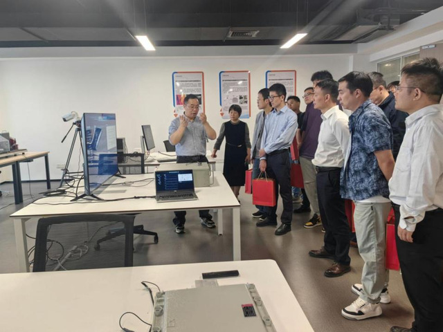 座談會議后,眾人前往中德教育合作示范基地,參觀學(xué)院多模態(tài)設(shè)備健康評估實驗室,副院長陳圣兵向校友們詳細(xì)介紹了該實驗室,主要聚焦計算機科學(xué)與技術(shù)安徽省高峰培育學(xué)科,針對工業(yè)生產(chǎn)中一些關(guān)鍵設(shè)備的運行狀態(tài)無法全面檢測的問題,從專業(yè)角度,精準(zhǔn)評估設(shè)備運行狀態(tài),已經(jīng)初步在化工、冶金、汽車制造等領(lǐng)域開始試用。