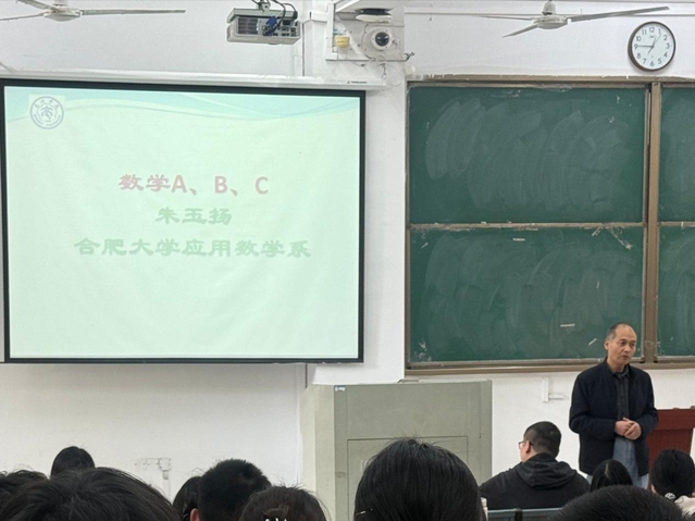 授課過程中,朱玉揚(yáng)教授從數(shù)學(xué)的理論意義出發(fā),深入闡述了其在科學(xué)研究和社會實(shí)踐中的重要作用。他指出,數(shù)學(xué)作為一門基礎(chǔ)學(xué)科,具有不可替代的核心價值。它不僅是解決各類實(shí)際問題的重要工具,更是培養(yǎng)邏輯思維與科學(xué)方法論的關(guān)鍵途徑。在科學(xué)研究領(lǐng)域,數(shù)學(xué)為物理學(xué)、化學(xué)等學(xué)科的理論構(gòu)建與推導(dǎo)提供了核心支撐;在工程技術(shù)方面,從計算機(jī)算法設(shè)計到建筑結(jié)構(gòu)優(yōu)化,數(shù)學(xué)模型的精準(zhǔn)計算推動了人類科技的持續(xù)進(jìn)步。