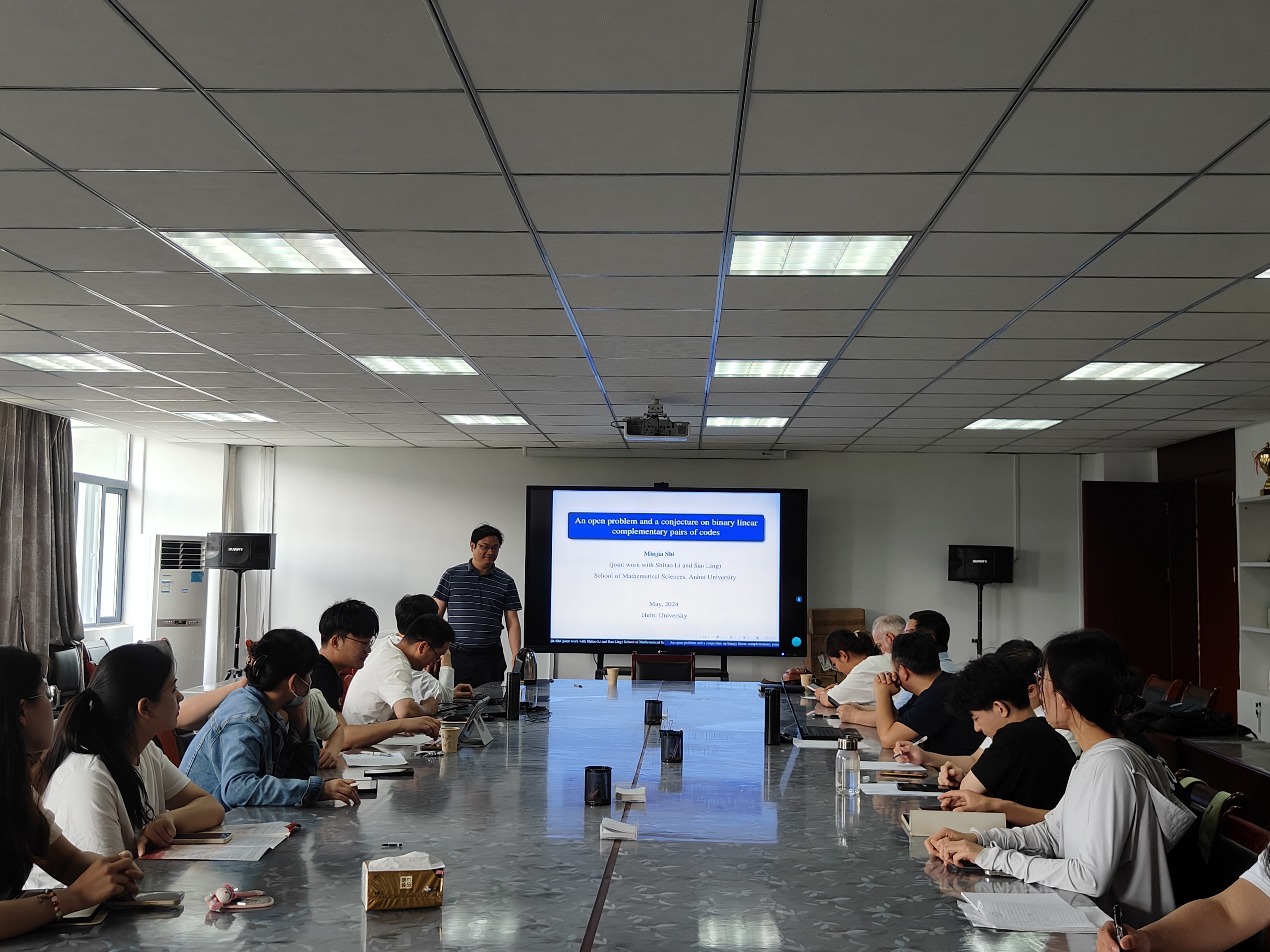 2024年5月24日下午,由科研處和人工智能與大數據學院主辦的題為“二元線性互補對碼的一個公開問題和一個猜想”的學術報告在36號樓305會議室舉行。人工智能與大數據學院青年教師及數學研究生共24人參加。此次報告由余海峰教授主持。