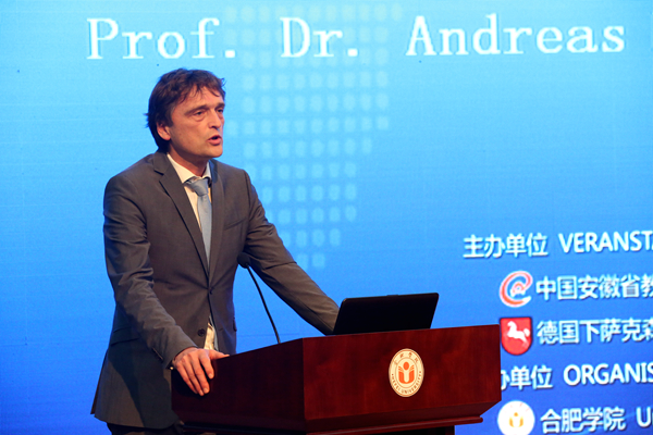 程藝指出,教育發展是一件戰略性的大事,需要戰略性謀劃,安徽省始終堅持把教育放在優先發展的戰略地位,積極深化教育綜合改革,大力推進教育內涵發展,在高等教育方面取得了成績,在全國也產生了影響,被稱為“安徽現象”。安徽高等教育改革起步較早,確定了先進的發展戰略思路,率先提出本科高校的全面轉型,建設應用型高校的發展思路,培育了一批像合肥學院一樣在全國有一定影響的應用型本科高校,初步建立了具有安徽特色的應用型高等教育體系。此外,高校的發展分類有序推進,高等教育的結構調整不斷深化,高校的科技優勢明顯增強,滿足了我省先進制造業,服務業領域對人才培養的需求,為推動高校科技創新、內涵式發展打下了良好的基礎。任何大學都可以在自己擅長的領域里爭創一流。如何把準現代教育的前進方向,把準安徽發展的根本要求,使命重大。每屆研討會都圍繞著高等教育發展的前沿問題,加強交流與研討,取得了豐碩的成果,努力推動中德教育的科學發展。本次研討會的召開為安徽省高等教育的發展提供了機會,我們期待碰撞出更多智慧的火花,照亮安徽高等教育未來發展之路。
