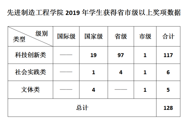 先進制造工程學院2019年學生獲得省市級以上獎項數據