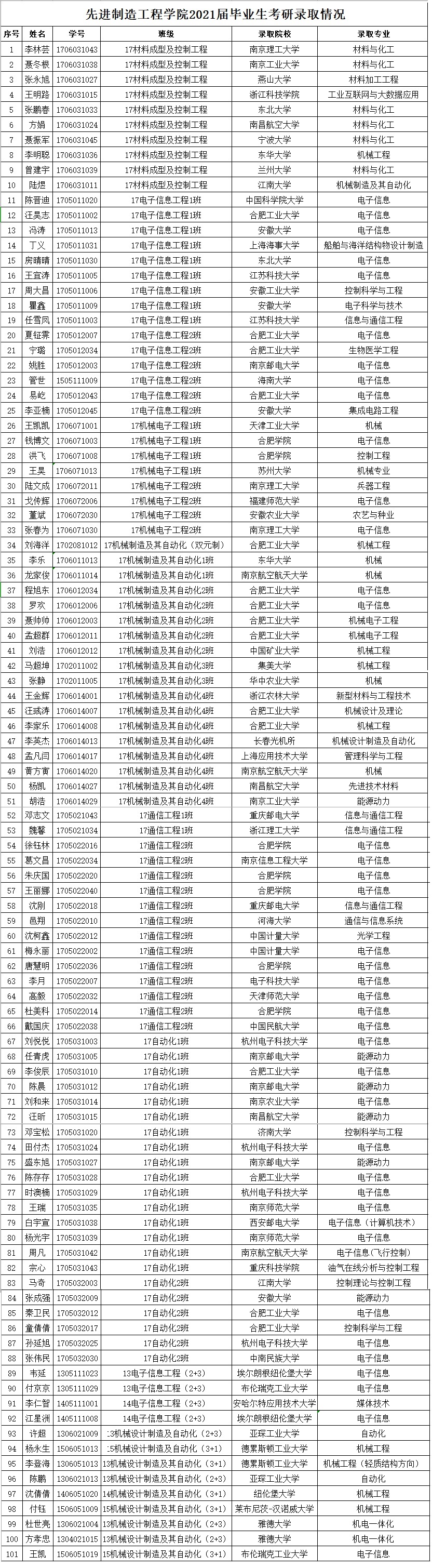 先進制造工程學院2021屆畢業(yè)生考研情況