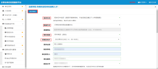 1.企業(yè)端登陸網(wǎng)址:https://yun.ahbys.com/Company/,選擇“校園就業(yè)市場(chǎng)”中“專場(chǎng)宣講會(huì)”,點(diǎn)擊“我要預(yù)約”。