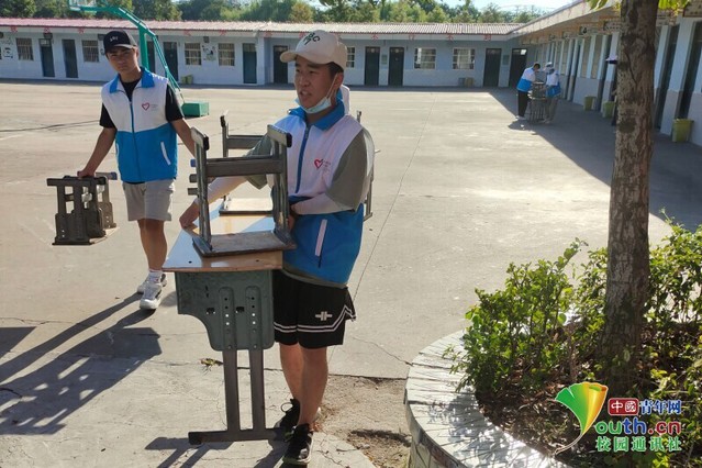 調研成員與當地志愿者協助社區進行核酸檢測的準備工作。 中國青年網通訊員 溫司君 攝