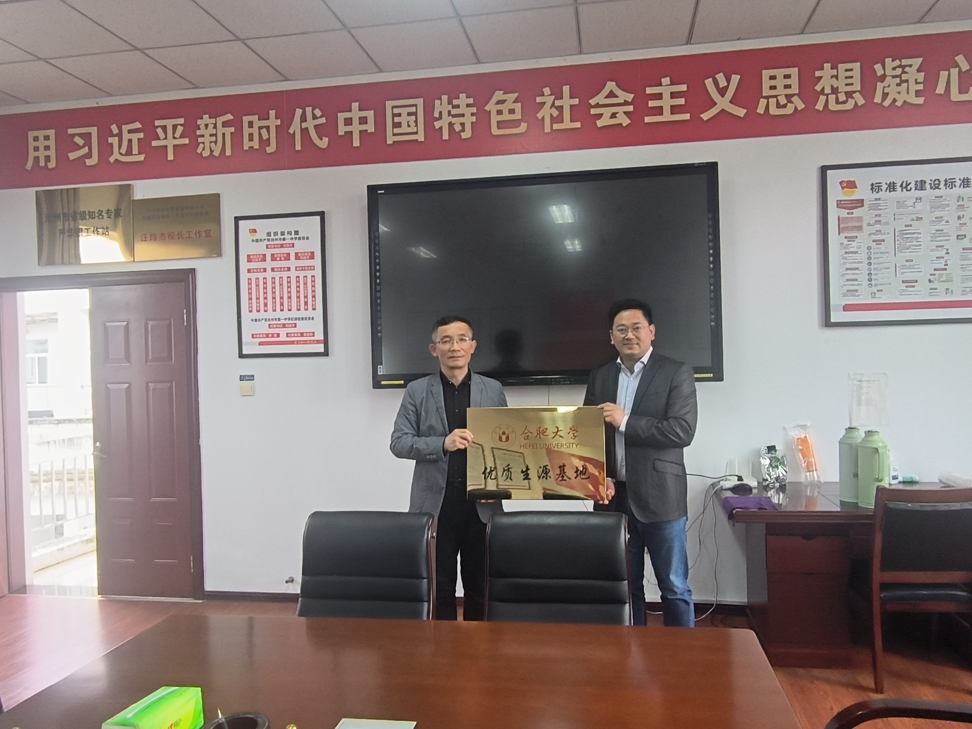 4月19日至20日,先進制造工程學院黨委書記杜娟、副院長胡國華、通信工程專業教師梅腱、先進院就業工作負責人張傲老師等一行人員抵達池州市,分別對合肥大學優質生源基地——池州第一中學和池州第八中學兩所學校進行了回訪。并與校領導及高三年級骨干教師代表開展座談交流,簽訂合肥大學優質生源基地協議,舉行授牌儀式并贈送錦旗。