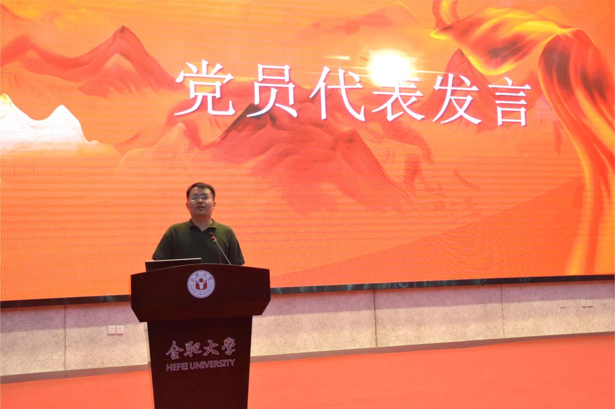 自動化系教研室陳克瓊同志和智能制造工程系金飛翔同志分別作為優秀共產黨員代表上臺進行了發言。他們分享了在強化黨性修養、提升思想引領、發揮先鋒作用、服務人才培養等方面的心得體會,生動彰顯了新時代中國共產黨人的政治品格、價值追求、精神風范和責任擔當。