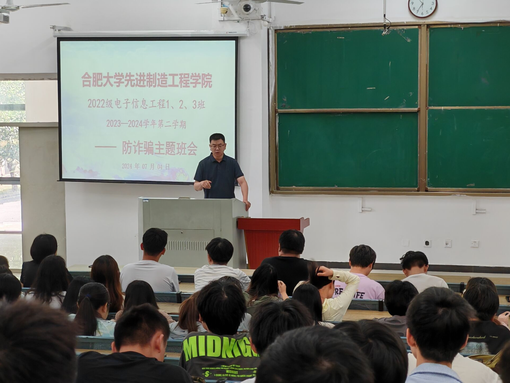 為進一步增強學生的安全防范意識,提高識別和應對詐騙犯罪的能力,7月4日上午,先進制造工程學院舉辦了“繃緊防范之弦,遠離詐騙之害”主題防詐騙宣講班會。學院領導老師、保衛處、學生處及錦繡派出所民警等出席,輔導員梅志強主持會議。