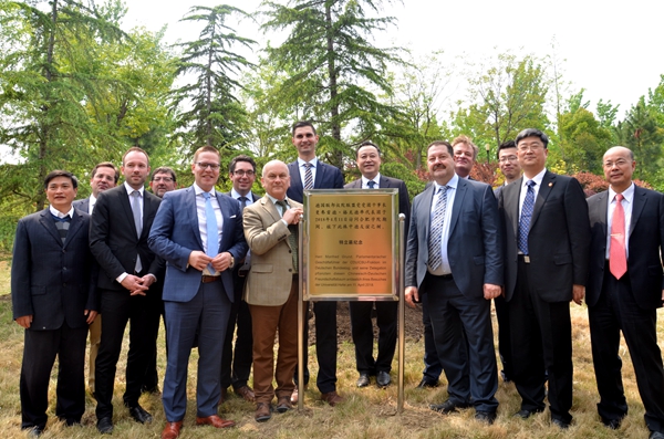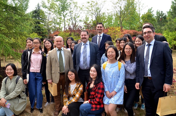 會后,格龍德與我校德語專業師生進行了熱切交談。賓主一行在我校二期校區共同種下了象征兩國友誼的常青樹,并在樹前合影留念。