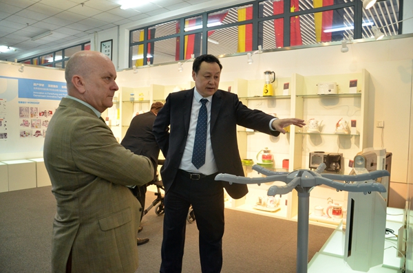 格龍德一行首先來到圖書館,在圖書館大廳觀看了學校介紹以及2015年中德兩國總理到訪合肥學院的視頻。視頻展現了我校在中德教育合作示范基地建設方面取得的重大成果,見證了中德雙方的友好交往。在觀看完視頻之后,雙方共同參觀了中德共建三十周年成果展。在參觀中,蔡敬民從合肥學院發展狀況、國際化合作及中德合作專業學術交流等方面介紹了我校的整體情況,并從中外師生交流、文化交流、科研合作、專業共建等多類合作項目方面介紹了開展情況。他表示,合肥學院堅持中外合作的辦學理念,借鑒德國人才培養模式,不斷完善中德教育合作示范基地建設,取得了一系列顯著成效。格龍德對合肥學院的發展態勢表示贊賞,對學校在發揮中德高校合作共建方面起到的引領示范效果表示肯定。本次來訪有利于我校深入開展對德合作交流,促進我校教育水平的不斷發展進步。