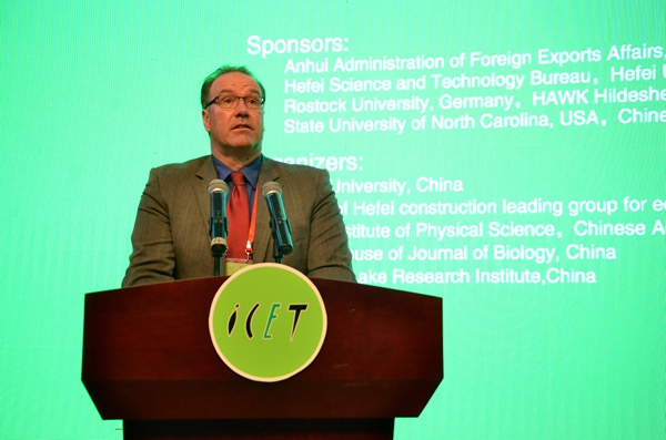大會主席、中國政府友誼獎獲得者、德國生物質研究中心主任、德國羅斯托克大學教授萊勒斯在講話中表示,羅斯托克大學與合肥學院在科教創新、學生交流等方面取得良好效果,期待能與我校在更多領域開展交流合作,同時,中德環境技術與知識轉化中心自2005年在合肥學院成立以來取得的諸多成果將在會議中展示。他指出,安徽是中國最具發展潛力的省份之一,在高速發展經濟的同時應不忘保護環境,做到環境的可持續發展與經濟的長足發展相統一。