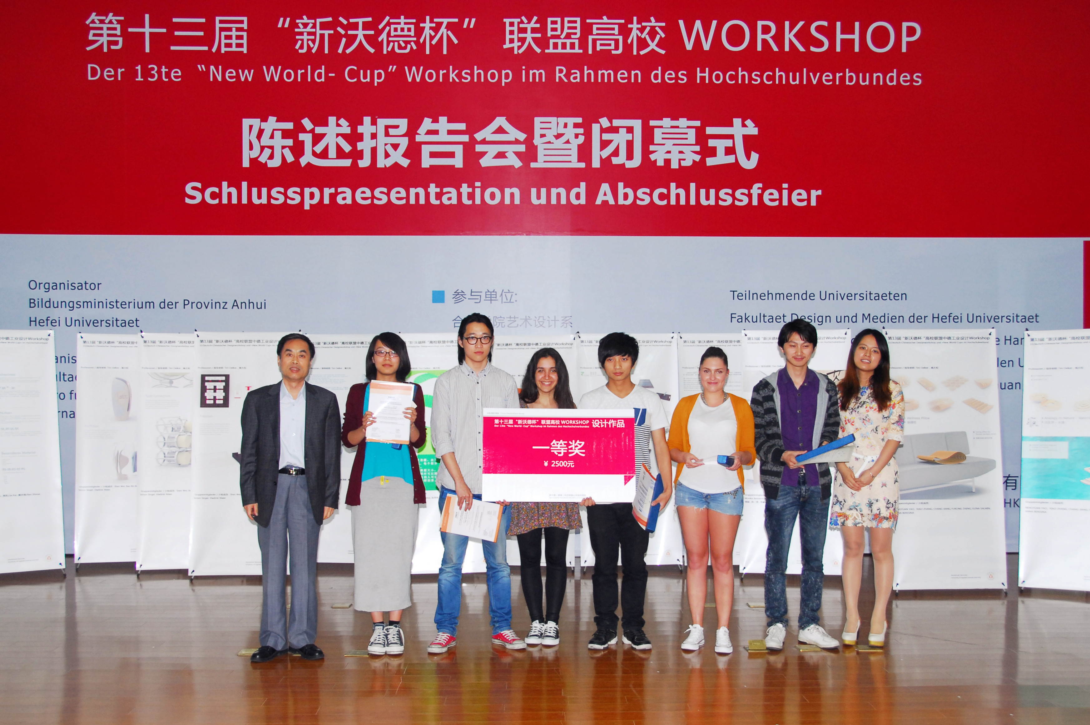 在WORKSHOP合作項目的陳述匯報中,奧爾克教授帶來了本屆活動成果的一組數據:61名中德韓學生在十天里共同產生100余個創意設計,并從中挑選出了31個創意設計進行制造。在陳述匯報中,十組參賽隊伍對自己的參賽作品進行解說,參賽作品綠色環保,造型新穎。第十組通過利用竹子的伸張性設計果盤、MP3、生物燈,因其精巧獨特,外觀美觀,并融入了中國茶文化以及低碳環保理念,榮獲一等獎。