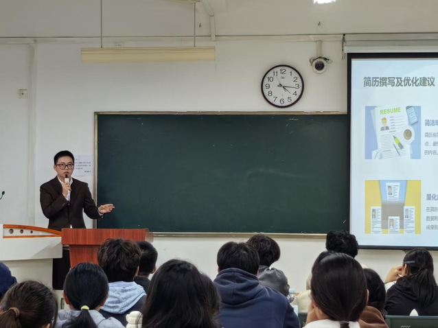 活動(dòng)伊始,盧方圓總經(jīng)理首先向同學(xué)們介紹了合肥駕車無憂科技有限公司的發(fā)展歷程、企業(yè)文化及在行業(yè)內(nèi)的發(fā)展前景。作為一家專注于智能交通與汽車后市場(chǎng)服務(wù)的創(chuàng)新型企業(yè),駕車無憂不僅致力于技術(shù)創(chuàng)新,更重視人才的培養(yǎng)與發(fā)展,為員工提供了廣闊的職業(yè)發(fā)展空間和多樣化的學(xué)習(xí)機(jī)會(huì)。隨后,盧方圓總經(jīng)理圍繞職業(yè)生涯規(guī)劃的主題,強(qiáng)調(diào)在快速變化的現(xiàn)代社會(huì)中,職業(yè)生涯規(guī)劃是每位大學(xué)生必須面對(duì)的重要課題。通過分享個(gè)人職業(yè)成長(zhǎng)的真實(shí)案例,盧方圓總經(jīng)理鼓勵(lì)同學(xué)們要勇于探索自我,明確個(gè)人興趣與優(yōu)勢(shì),結(jié)合行業(yè)趨勢(shì)和社會(huì)需求,設(shè)定短期與長(zhǎng)期的職業(yè)目標(biāo)。