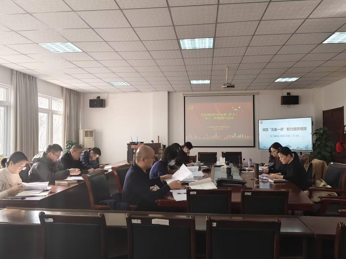 1220下午,合肥大學經濟與管理學院于一期4棟二樓召開了黨委理論學習中心組(擴大)第十三次理論學習會議。本次會議由經濟與管理學院黨委副書記夏丹青主持,各黨委委員、黨支部書記參加本次會議。