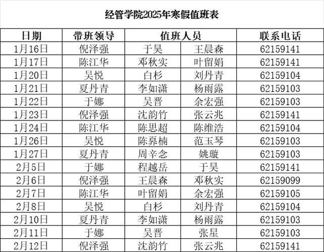 經管學院2025年寒假值班表