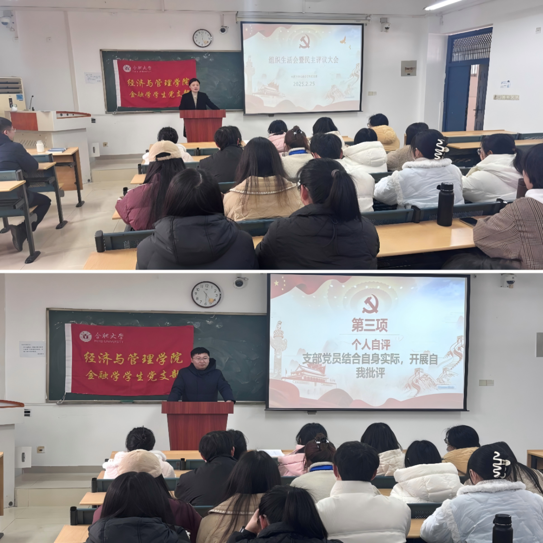 2月25日,經濟與管理學院金融學學生黨支部在4棟301教室召開2024年度組織生活會暨民主評議黨員會議。金融學學生支部黨員全員參會,學院黨委副書記夏丹青到會指導。